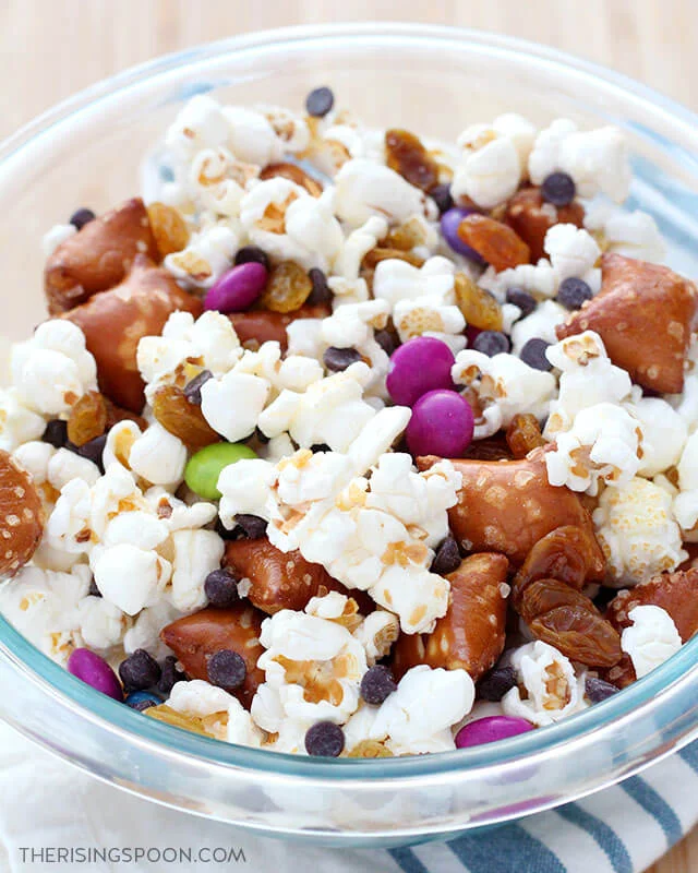 I like doing a mix of kettle corn, pretzels, chocolate candies, and toasted nuts because it hits every craving in one handful.
