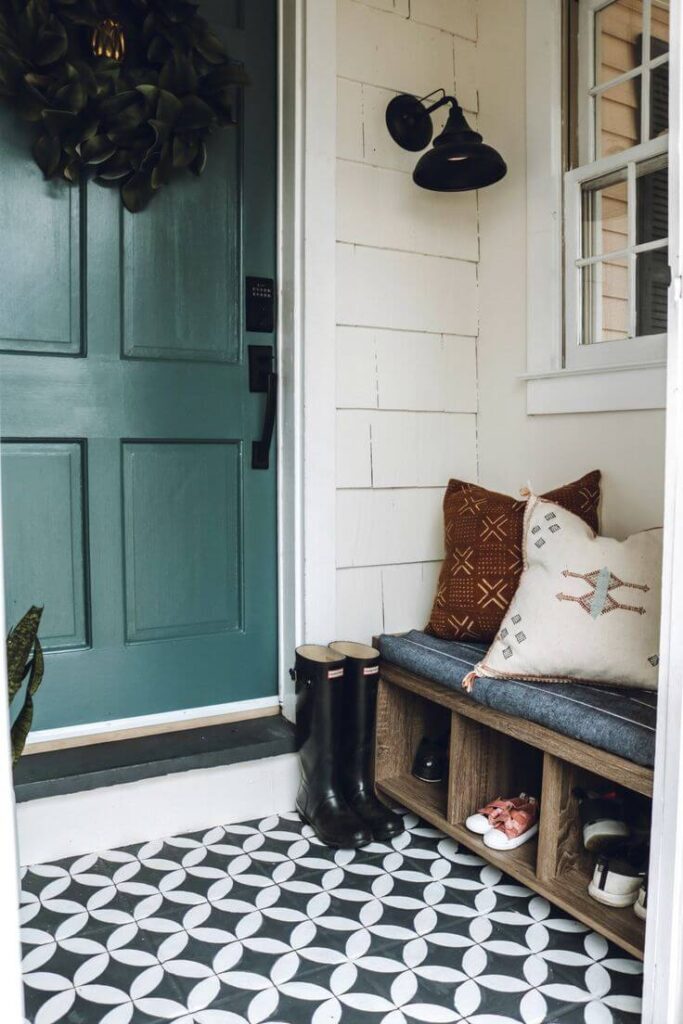 Make your small entryway look better by using tiles with cool patterns on the floor.