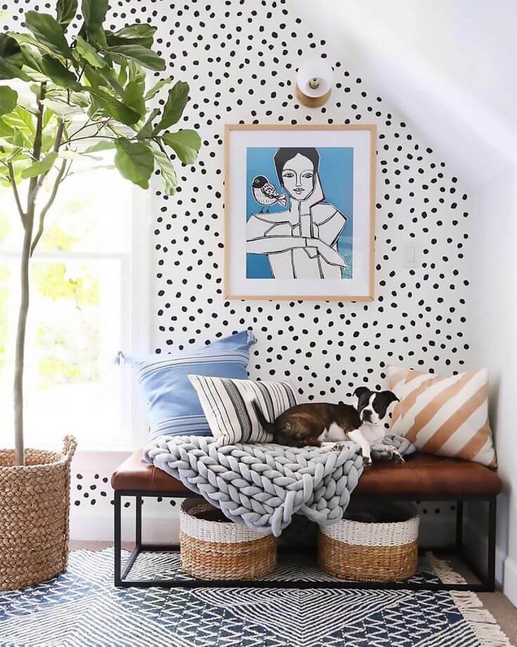 Decorate one wall as an accent wall and adorn it with wallpaper or a bold paint color.