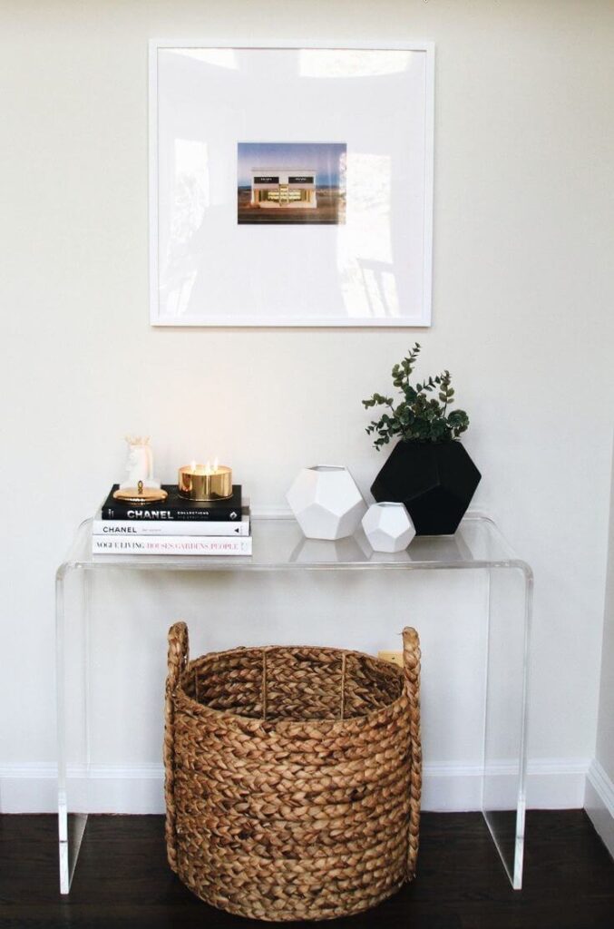 Choose a clear or glass console table for your small entryway. This kind of table makes the space feel more open because light can pass through it.