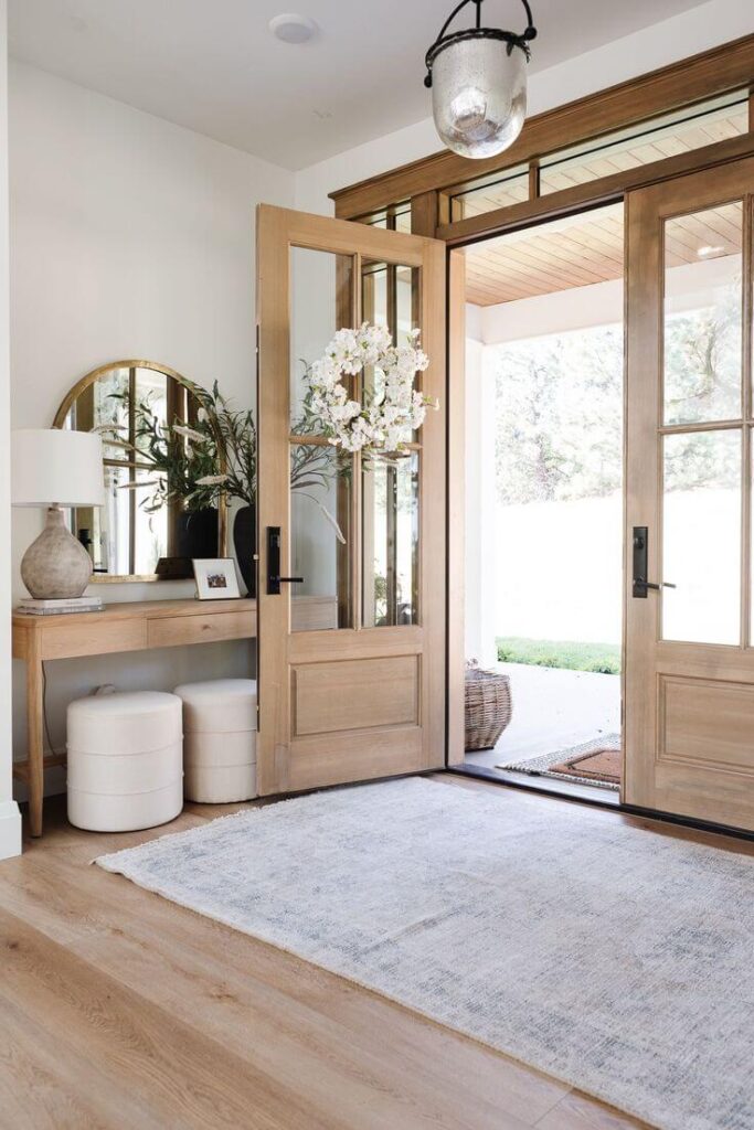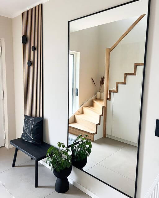 If you have enough wall space in your entryway, adding a mirror is a great idea.