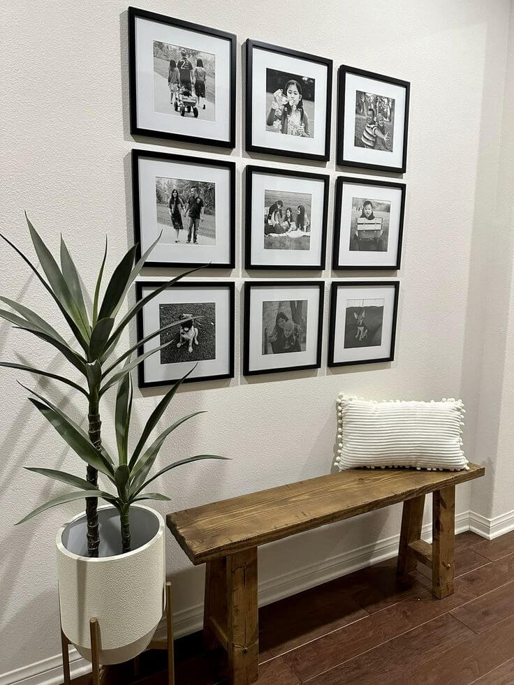 Craft a DIY gallery wall by hanging photos of your loved ones.
