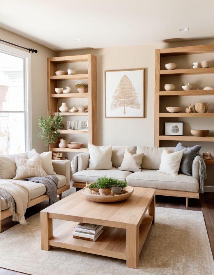 There’s something about light wood paired with soft neutrals that instantly makes a space feel calm and open.