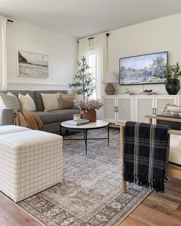 So, go for a big anchor piece like a comfy sectional sofa instead!