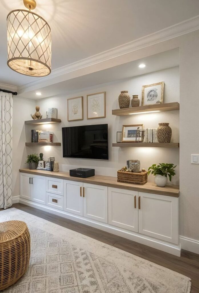 Explore the option of a wall-mounted TV for additional storage possibilities.