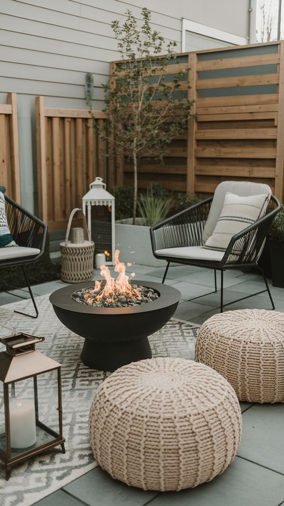 Compact tabletop fire pits work surprisingly well for small patios and make nighttime feel more cozy.