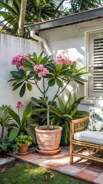 One large olive tree, palm, bird of paradise, or tall cactus instantly makes the patio feel elevated.