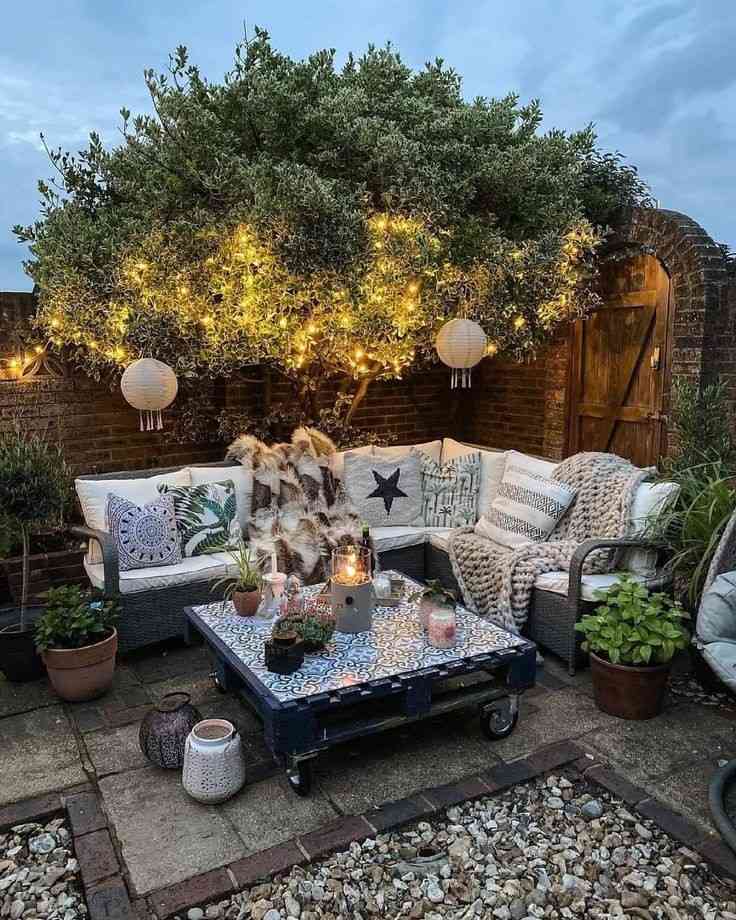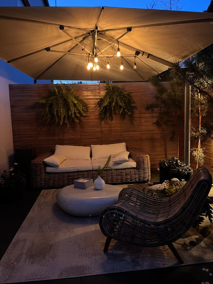You want the glow to feel close to the seating area so the patio actually feels inviting at night.