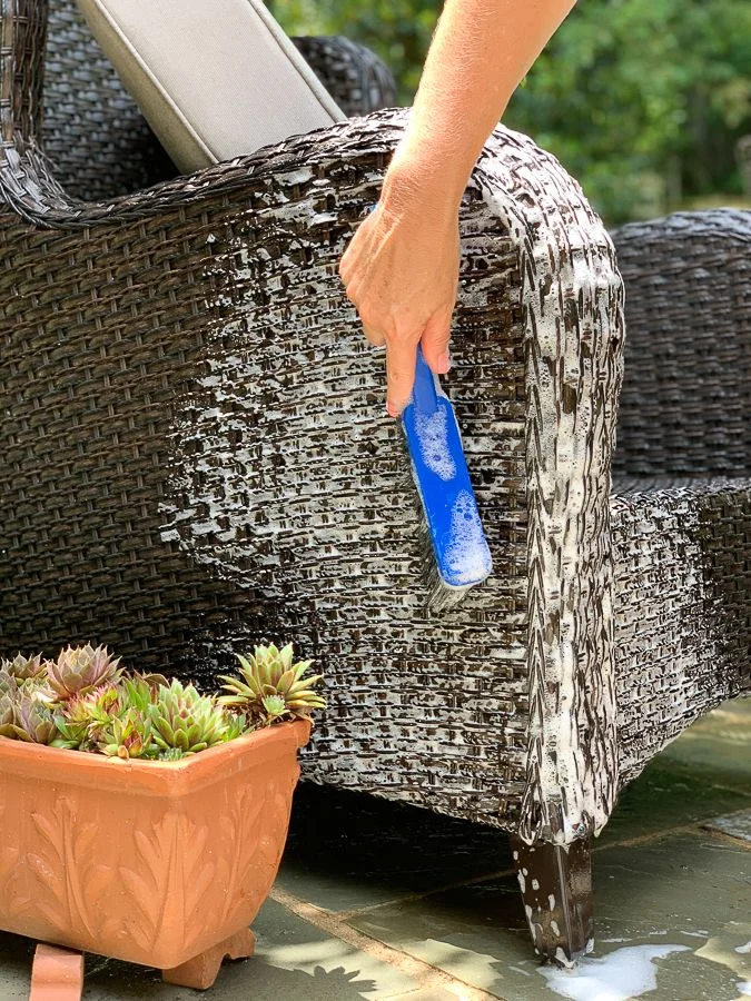 With warmer weather ahead, get your outdoor furniture ready by adding a squirt of dish detergent to warm water.