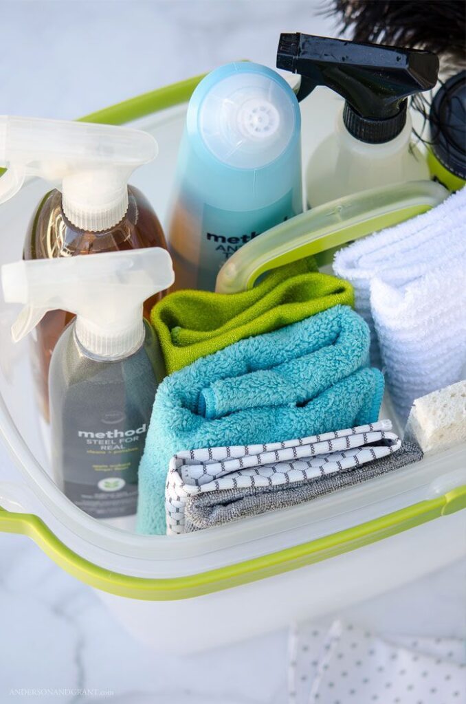 Keep a cleaning caddy on each floor or in key areas like the bathroom or laundry room, so essentials are always within reach.