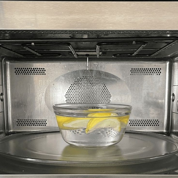 Once done, carefully remove the bowl and wipe down the inside and outside of the microwave with a sponge.