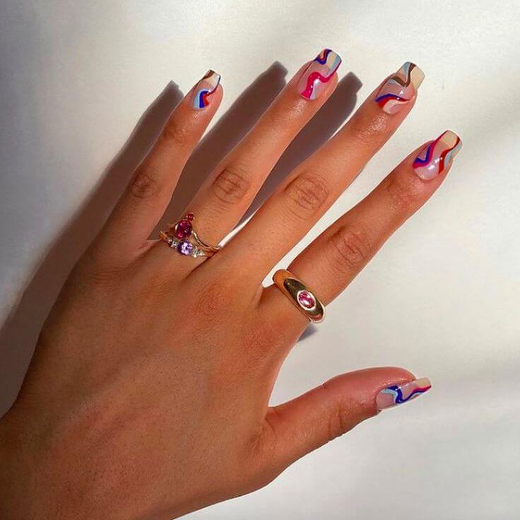 This year, nail art is all about swirls, soft edges, and vibrant colors, just like these stunning spring swirl nails. The playful patterns extend to the tips, making it a trendy choice for spring nail designs.