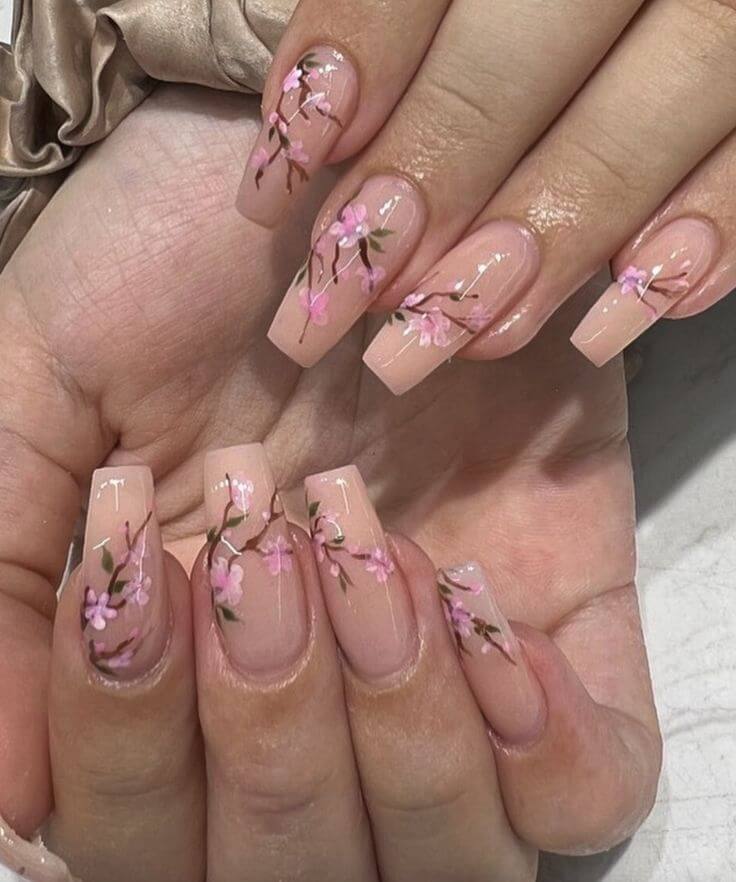 Cherry blossom nails are super popular in the nail art world. They show the beauty of these flowers, which don’t last long.