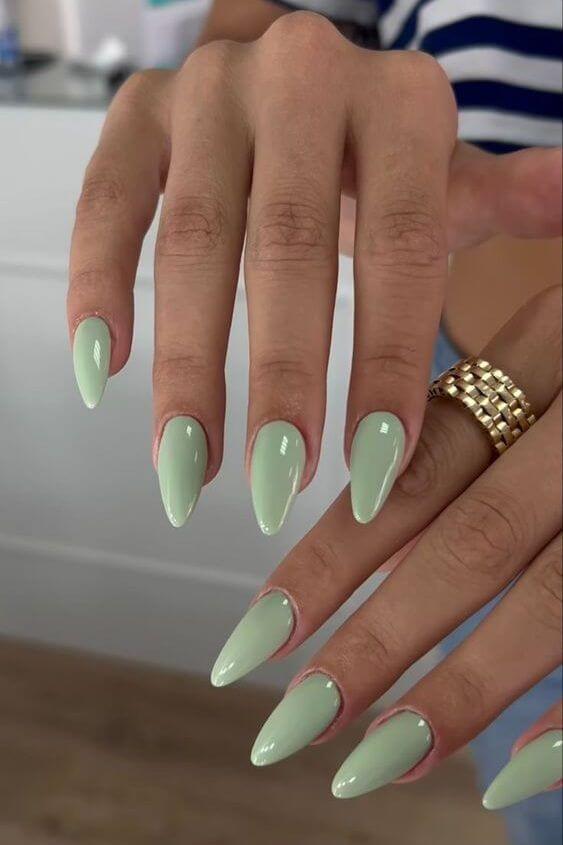 Try out mint green nails, they’re super trendy this year! It’s a must-have color for adding a fun pop to your nails, especially for spring.