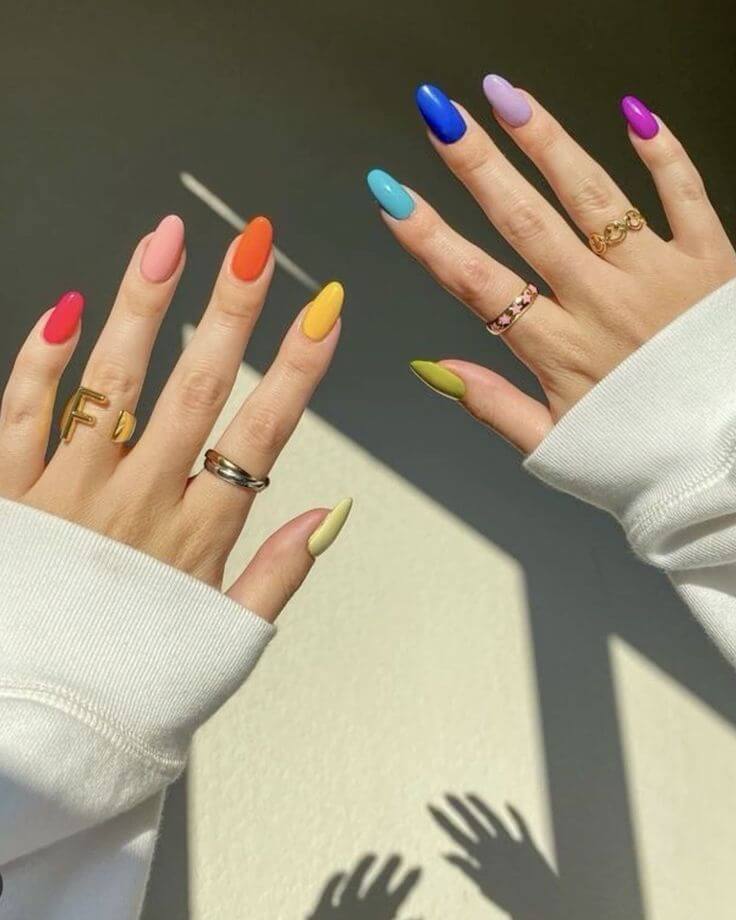 Can’t make up your mind? How about going for a rainbow nail design?