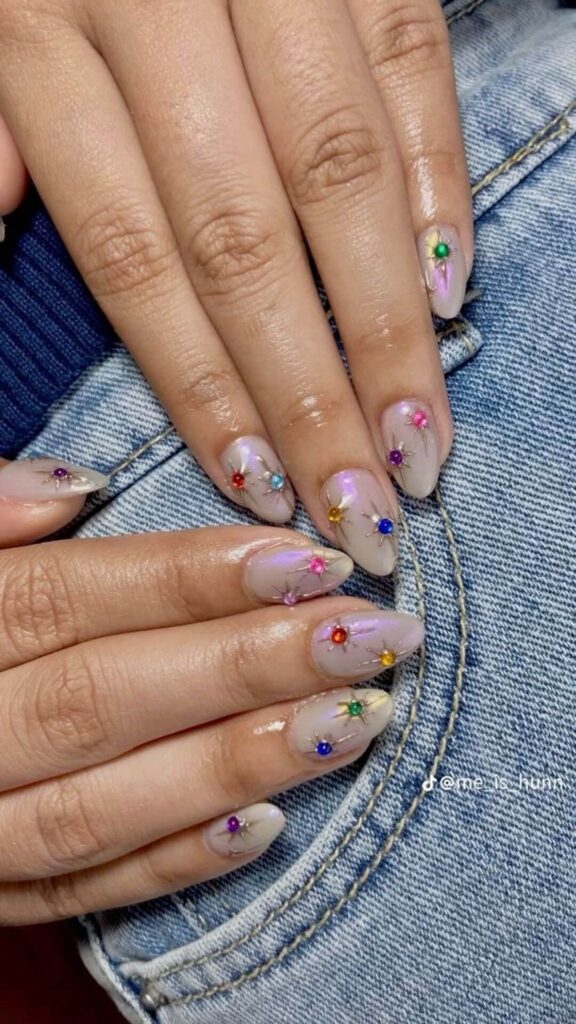 Add some gems or stones to your nails for a playful touch.