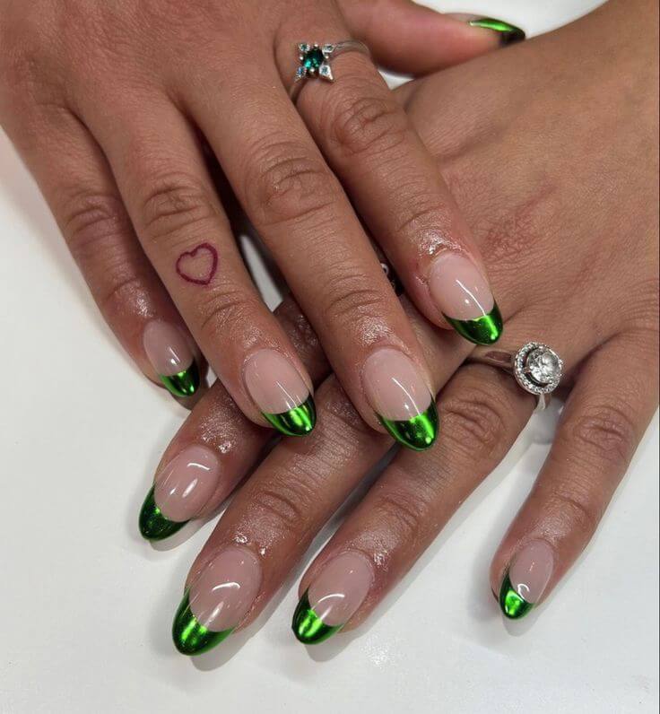 17. Green Chrome French Tips