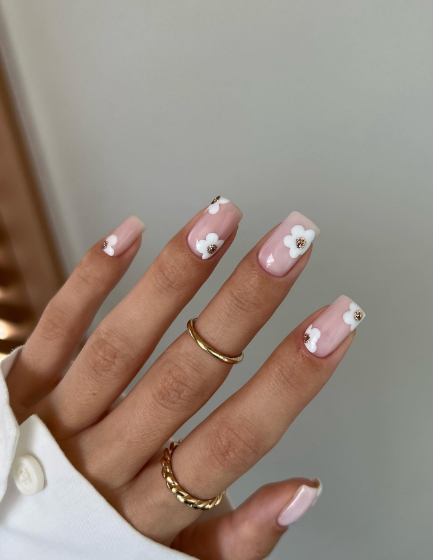 For a chic spring nail idea, go for simple white floral nails.