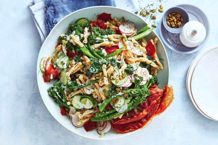 19. Spring Pasta Salad With Lemon, Spinach, and Crispy Prosciutto