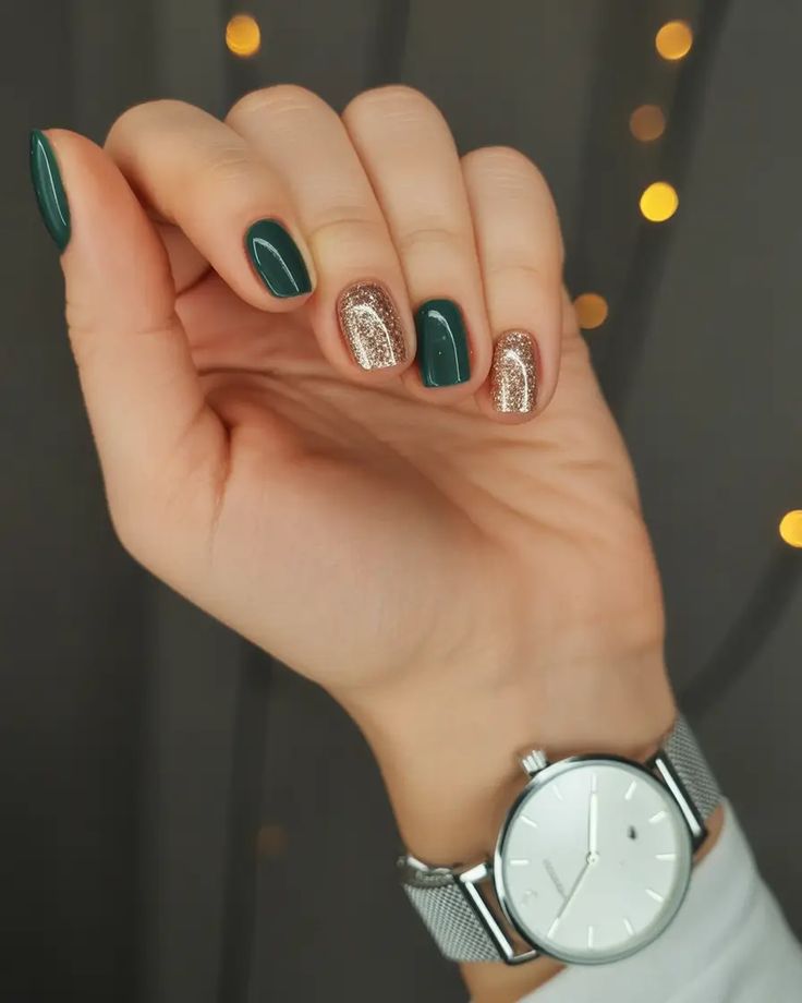 Go for an alluring emerald green shade with added sparkle for a glamorous and festive touch to your St. Patrick’s Day nails.
