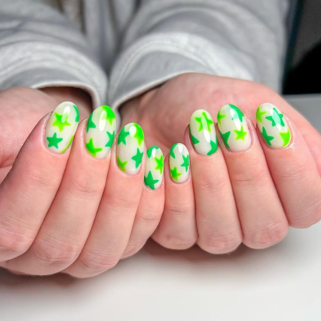 Scattered green star accents instantly make your nails feel playful and eye-catching without going over the top.