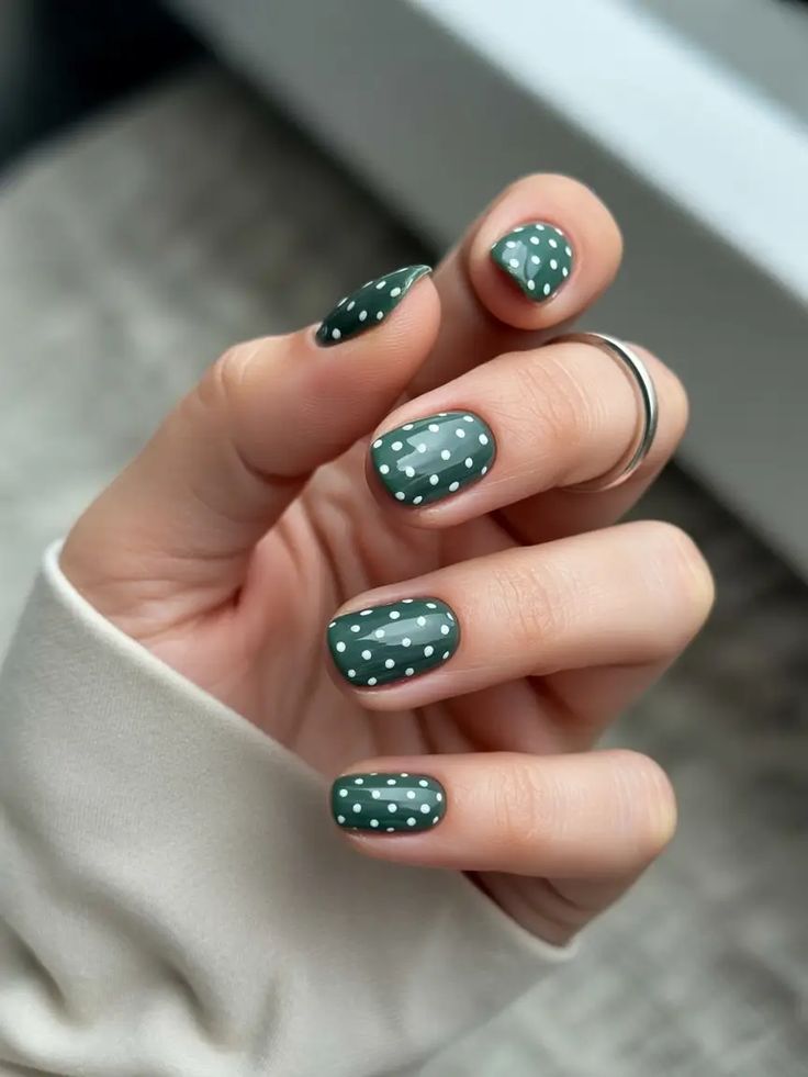 Have some fun celebrating with polka dots in different shades of green. This nail design brings a playful and festive vibe to your St. Patrick’s Day nails.