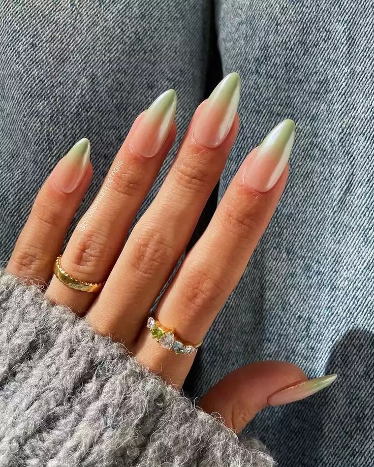 Achieve a gorgeous gradient look by applying soft green shades to each nail for St. Patrick’s Day.