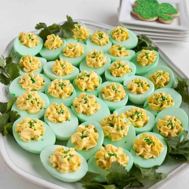 Deviled eggs are already a party classic, and adding a little green food coloring makes them St. Patrick’s Day-ready.