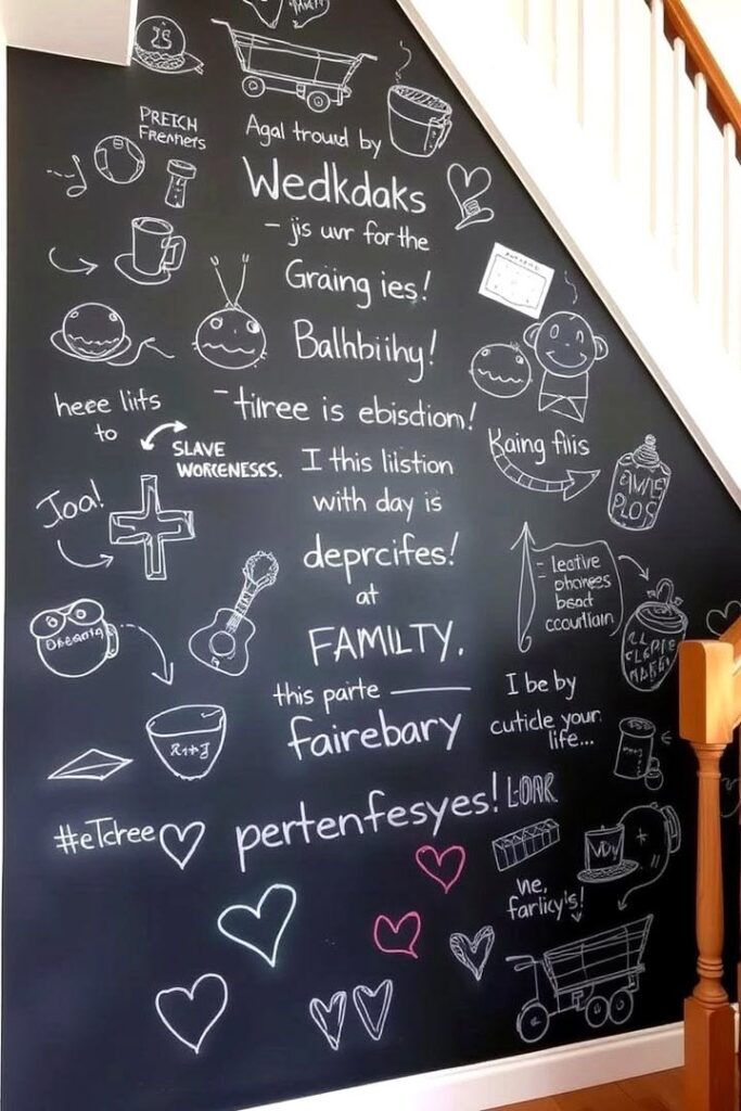 A wooden letter board, a reclaimed sign, or a single carved word can anchor an entire staircase wall.