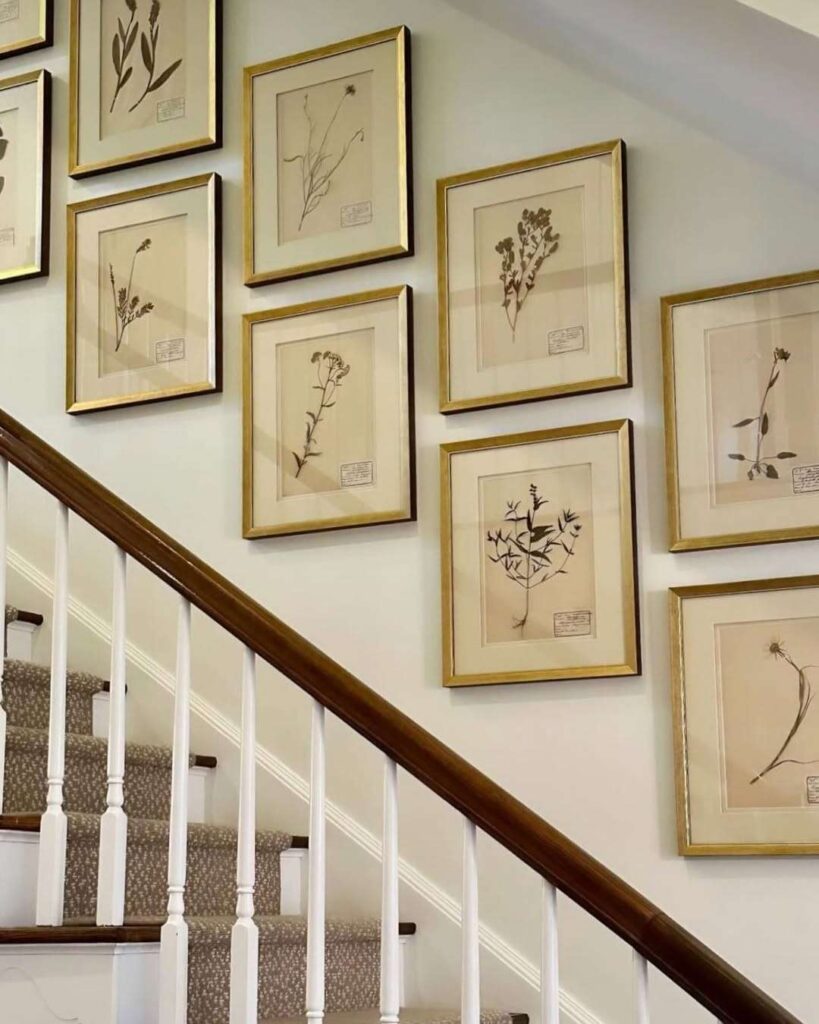 There is something about an antique gold frame that immediately makes a staircase wall feel like it has been there for a hundred years.
