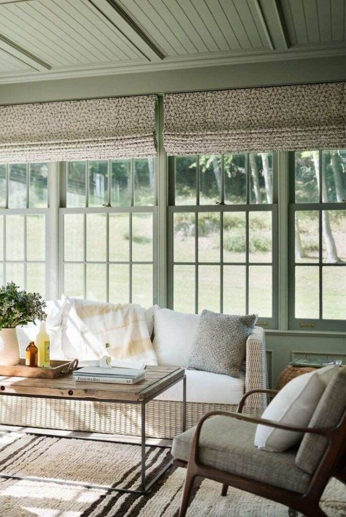 Heavy fabrics can feel out of place in a sunroom.