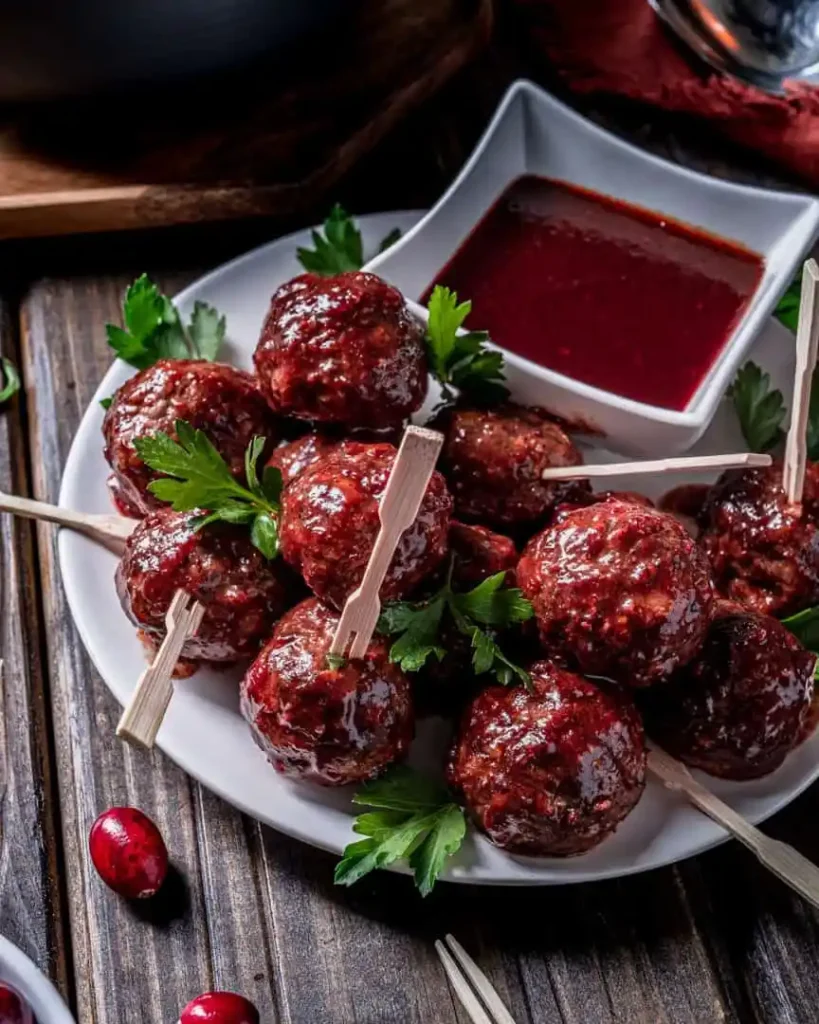 Small but mighty, these meatballs simmer in a tangy cranberry sauce that coats them like a glaze.