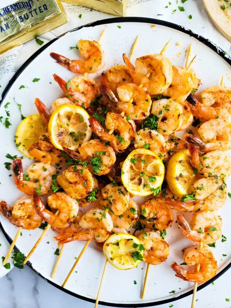 The shrimp are brushed with melted butter infused with garlic, lemon juice, and a touch of parsley before being grilled or pan-seared to perfection.