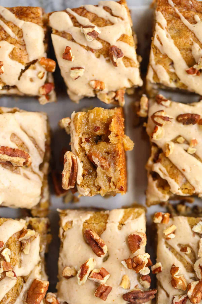 Chewy, buttery blondies with crunchy pecans and a hint of maple syrup?