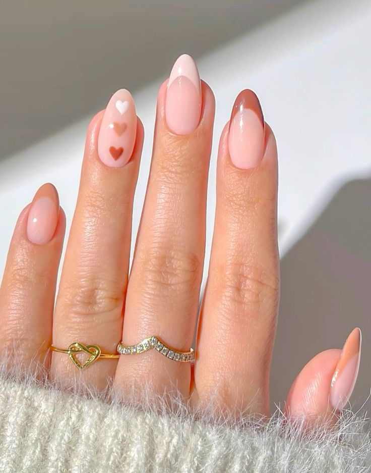 But your ring finger does its own thing, it’s covered in three tiny hearts using the same colors from the rest of your nails.