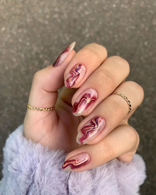 These raspberry marble nails are the perfect mix of juicy and chic.