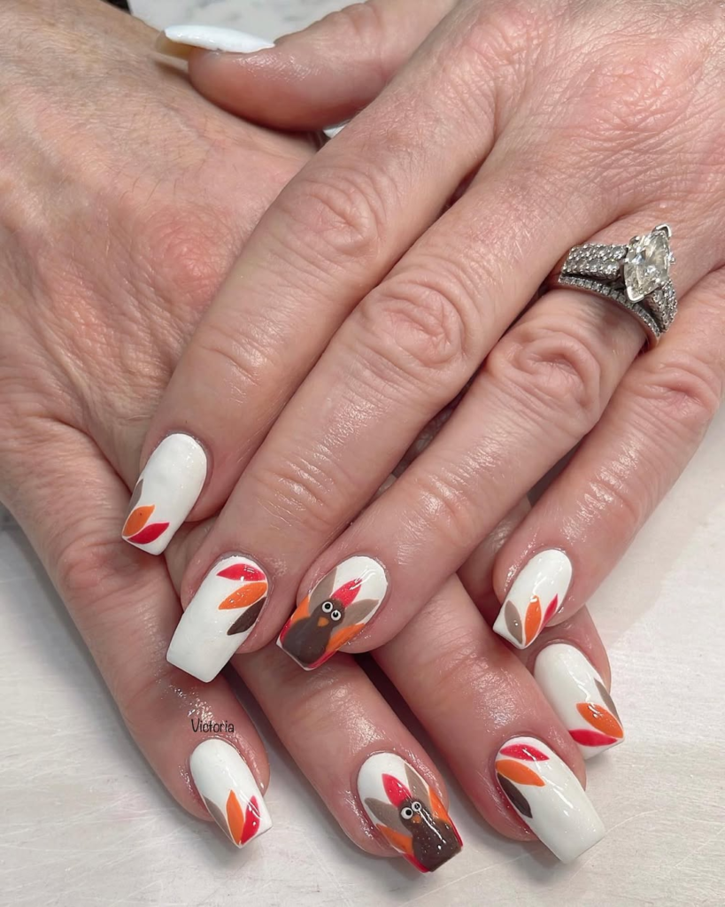 If you’re into something fun but still cute, these turkey Thanksgiving nails are such a good idea.