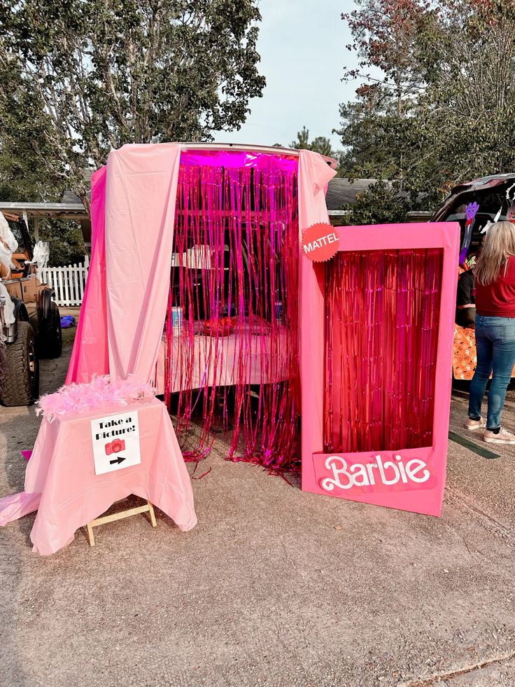 Deck your trunk in hot pink everything: sparkly curtains, heart-shaped balloons, glittery props, and Barbie boxes for Insta-worthy photos.