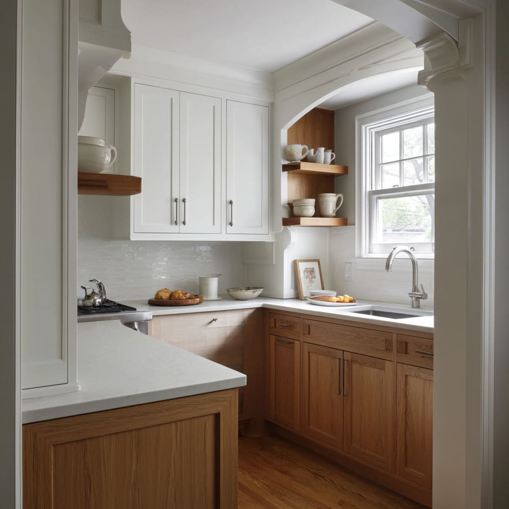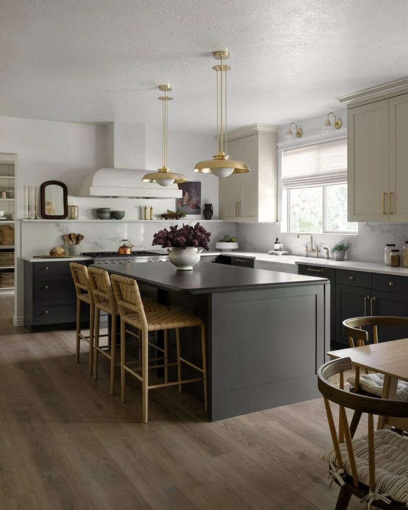 This classic pairing works because it balances warmth with brightness, but it’s also great for anyone who wants their kitchen to feel lighter without giving up character.