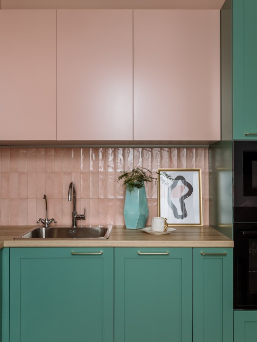 7. Soft Pink Uppers and Green Lowers Kitchen cabinets