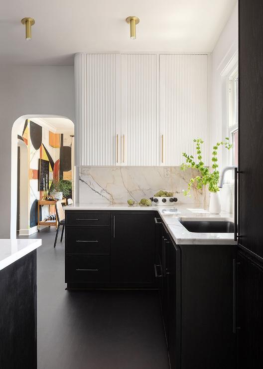 3. Black Lowers and White Uppers Kitchen cabinets