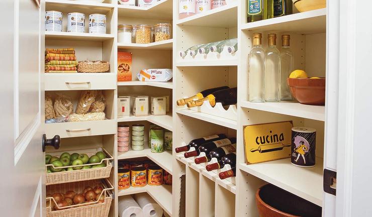 Canned goods, bottles, and big pantry staples work much better in pull-out drawers.