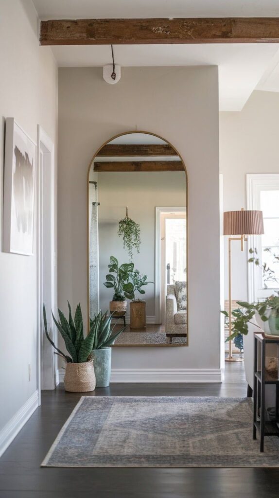 Even a narrow wall or corner can feel deliberate with a slim console, wall hooks that match your hardware, or a mirror that reflects light back into the space.