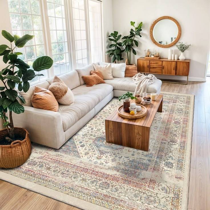 Neutral rugs with subtle texture tend to age better than loud patterns.