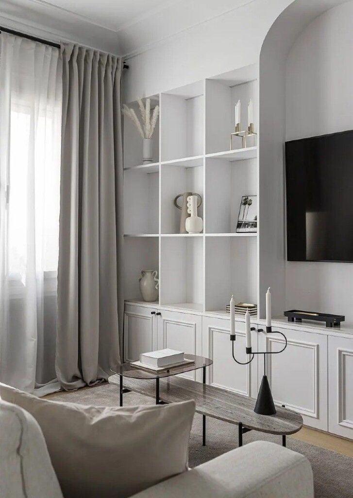 Expensive apartments treat open shelving like visual breathing space, not storage overflow.