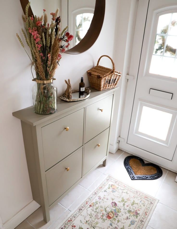 Shoes piled by the door or random bags hanging everywhere immediately undo the effect.