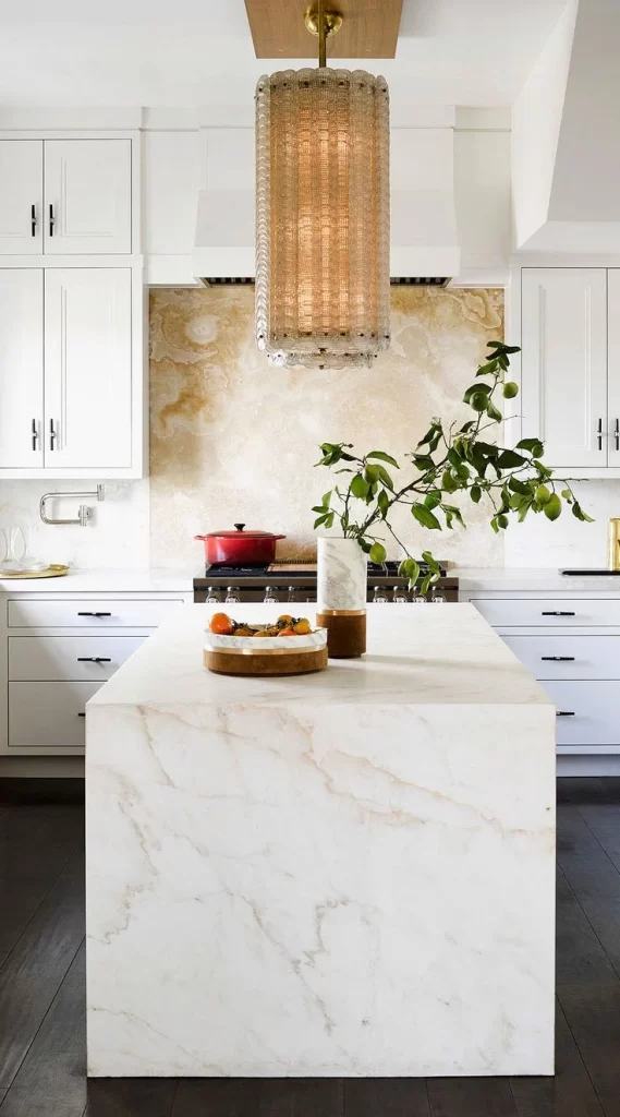 Elevate your kitchen with the luxurious beauty of white onyx slabs, adding a touch of sophistication and elegance to your white kitchen backsplash.