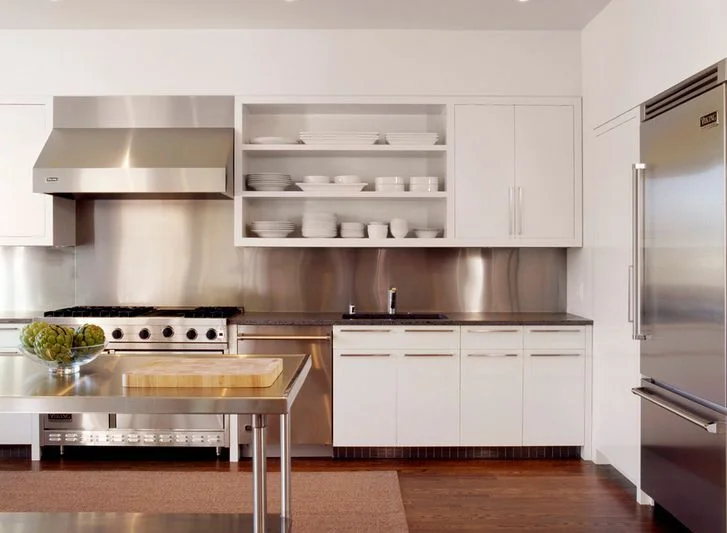 Installing stainless steel in your white kitchen backsplash can be a game-changer.