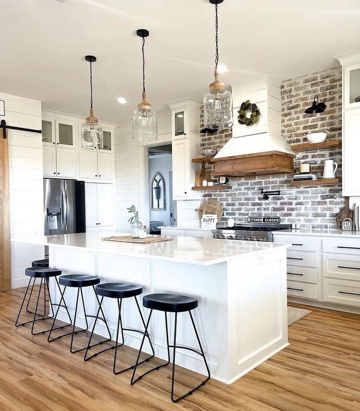 White brick veneer backsplashes bring a rustic yet refined vibe to your kitchen.