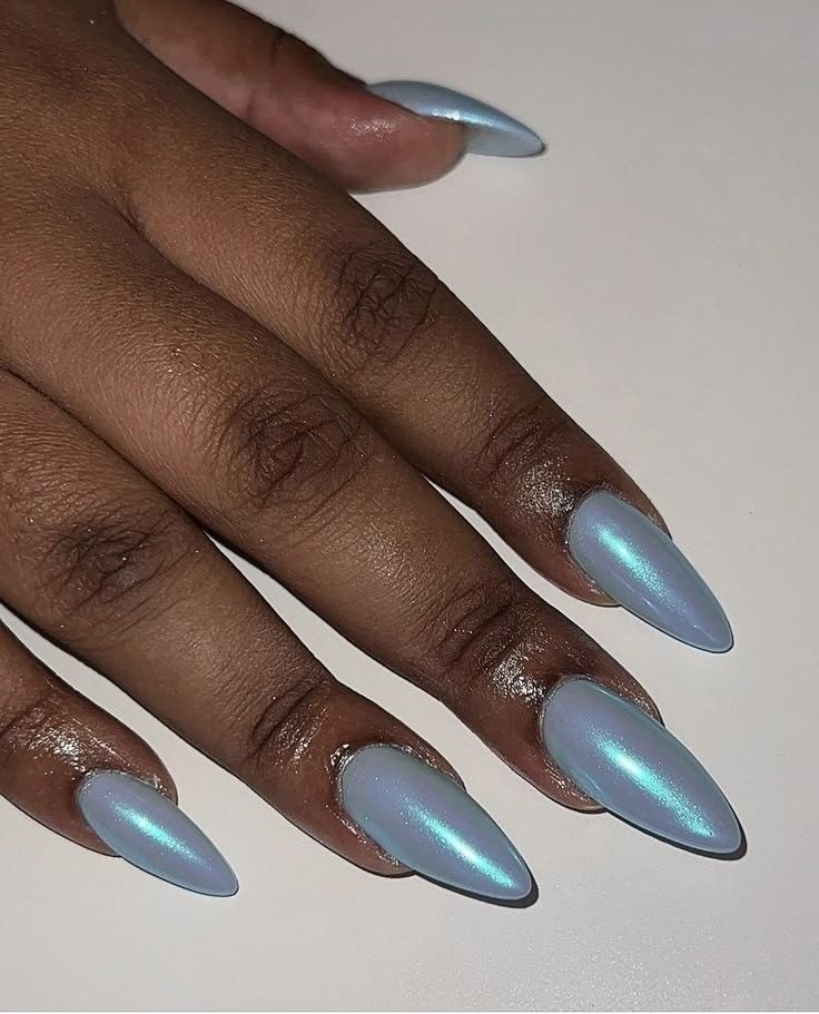 Frosted blue nails are what Elsa would wear if she had impeccable taste in polish.
